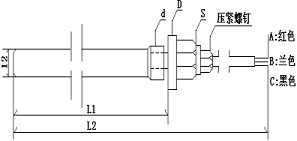 4、例如WZC-200-2:表示Cu50傳感器,螺紋G1/2,插入深度150mm長(zhǎng),總長(zhǎng)550mm。直徑12mm